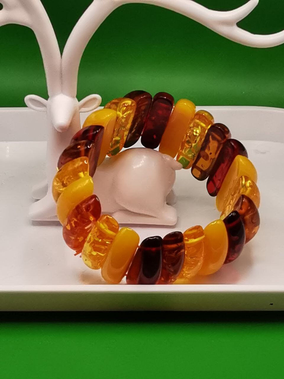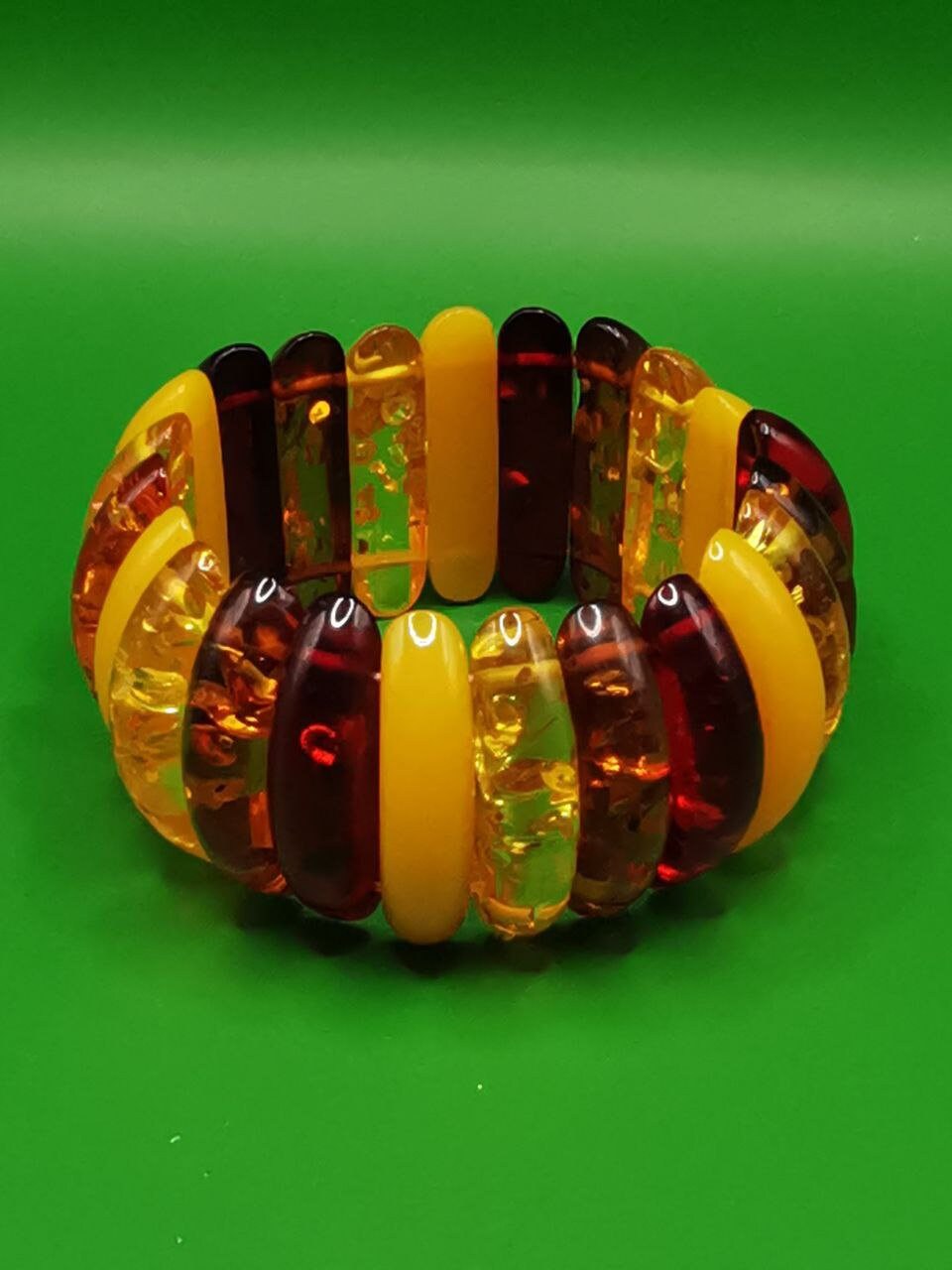Beautiful amber bracelet with double elastic band.