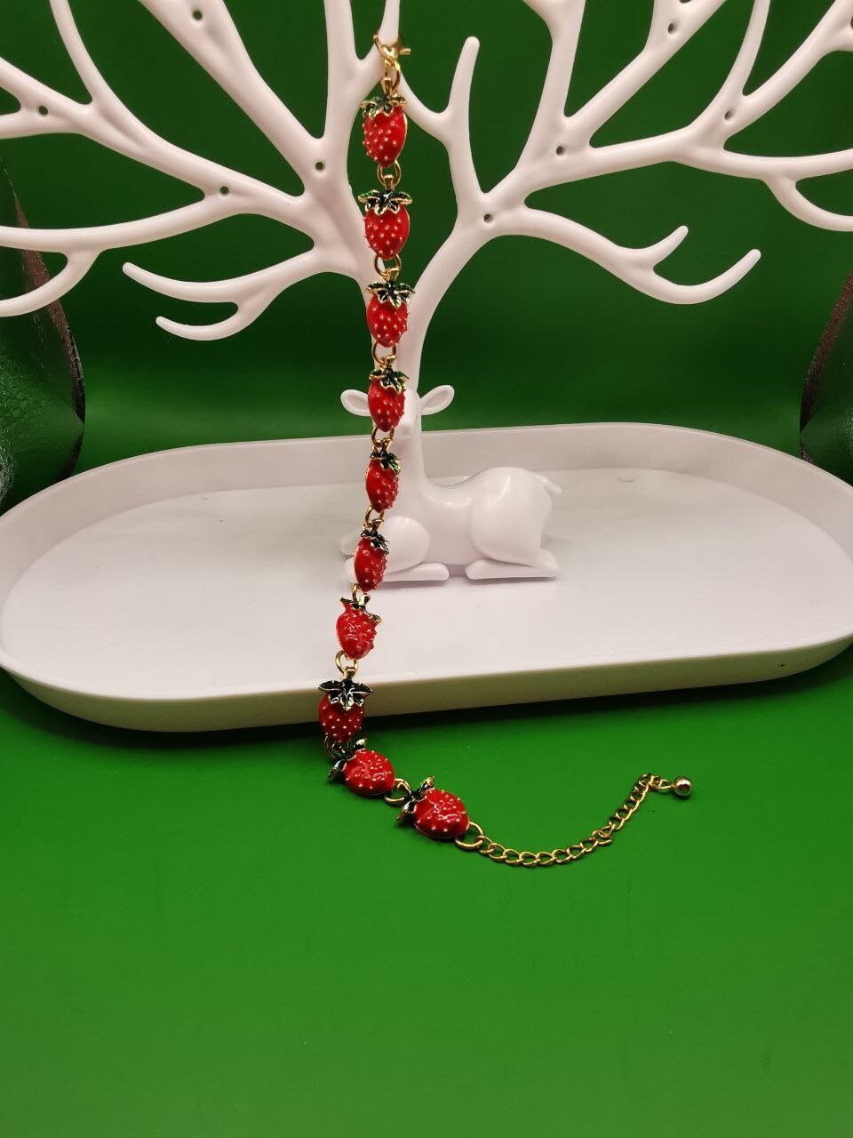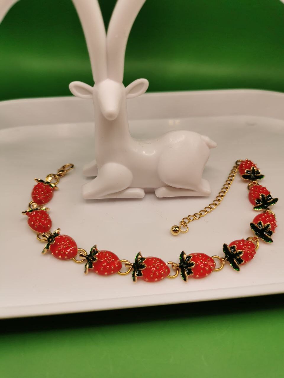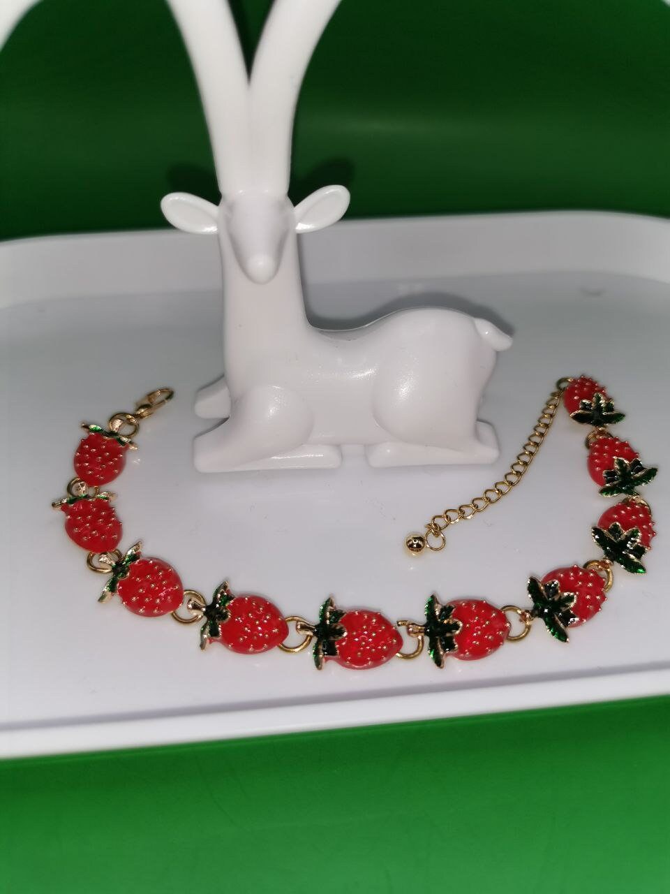 A beautiful bracelet with strawberries as a gift for any occasion.