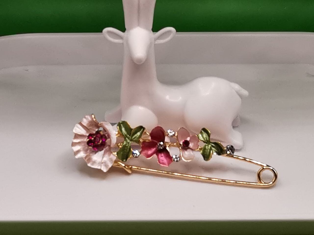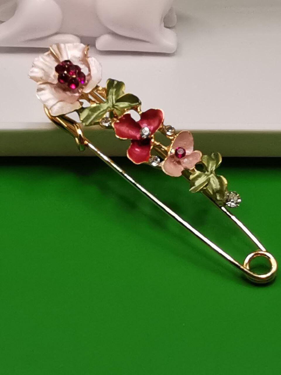 Brooch with rhinestones on a pin. Women's jewelry gift.