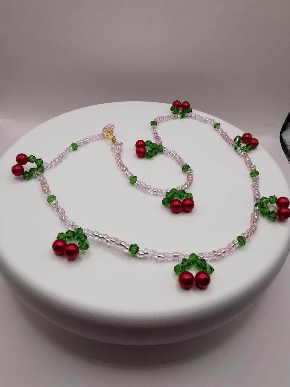 Cherry Choker. Elegant handmade jewelry. Exclusive gift for a woman. Length 43 cm.