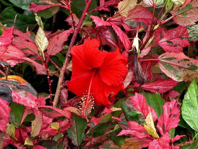 Grown for its stunning variegated foliage and brilliant single red flowers, this heritage hibiscus cultivar is making a comeback. Hibiscus Cooperii creates a fancy showpiece in the garden with its brilliantly colored leaves in shades of burgundy red, pink, white and green.