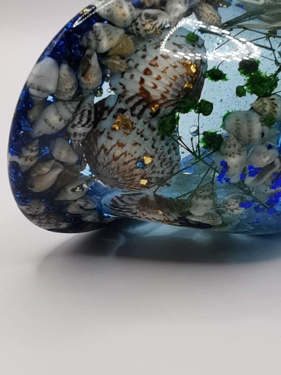 The flavor is made from resin, natural dried flowers and natural sea shells.